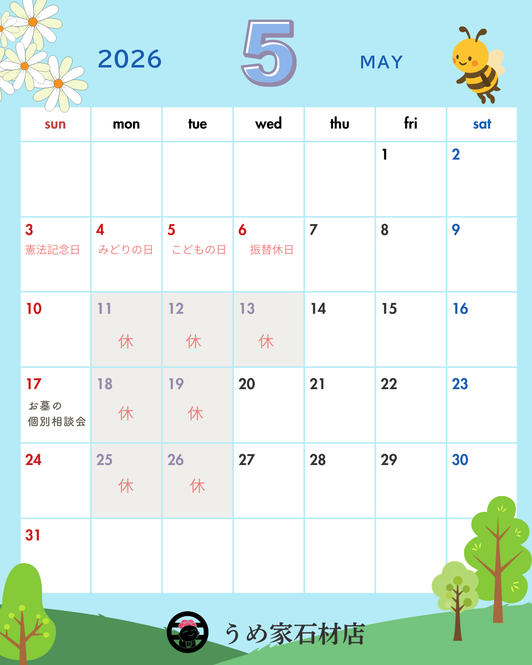 2023年4月30日 / 最終更新日時 : 2023年4月30日 umeya-sekizai ご案内 スタッフ募集中です。私達と一緒に働きませんか? うめ家石材店で一緒に働いてくださるスタッフを募集しています。経験不問、終活・お墓じまいなどにご興味ある方だとうれしいです。 くわしいことは こちらのサイト でご案内しています。よろしくおねがいします。 ★店舗スタッフ募集 […]