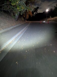 ヘッドライトを点灯して避難場所を散策