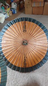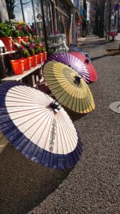 旧店舗の手桶の棚板も、色を塗り替えて新店舗の手桶棚板に活用しています。