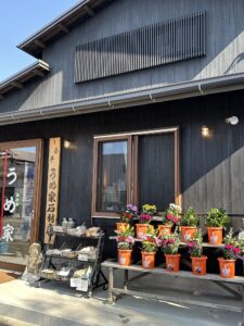 店舗ガラスの「うめ家」の文字はこの立て看板からトレースしています。