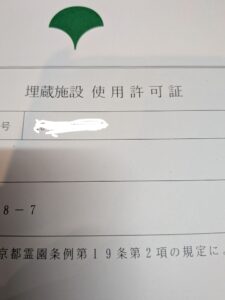 霊園の使用許可証です。