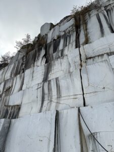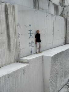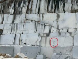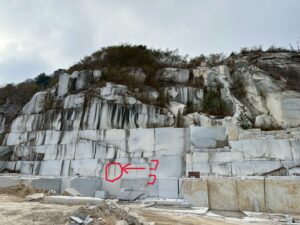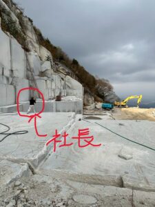 石原社長に伺うと 一面同じように見える岩塊でも模様にムラがあるところ、傷などもわかるそうです。