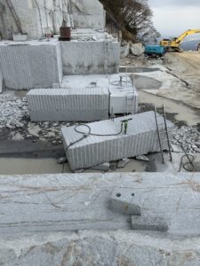 採掘には極力熱を使わないようにワイヤーソーで岩盤から切り離します。