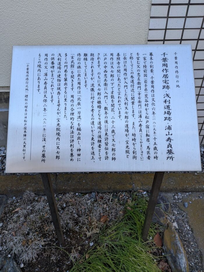 向かい方には 松戸ゆかり著名人 千葉周作の碑