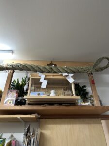 神棚の注連縄も何とか取り替えました。※本当はもっと早くお飾りしたかったのですが・・・。神様申し訳ございません。