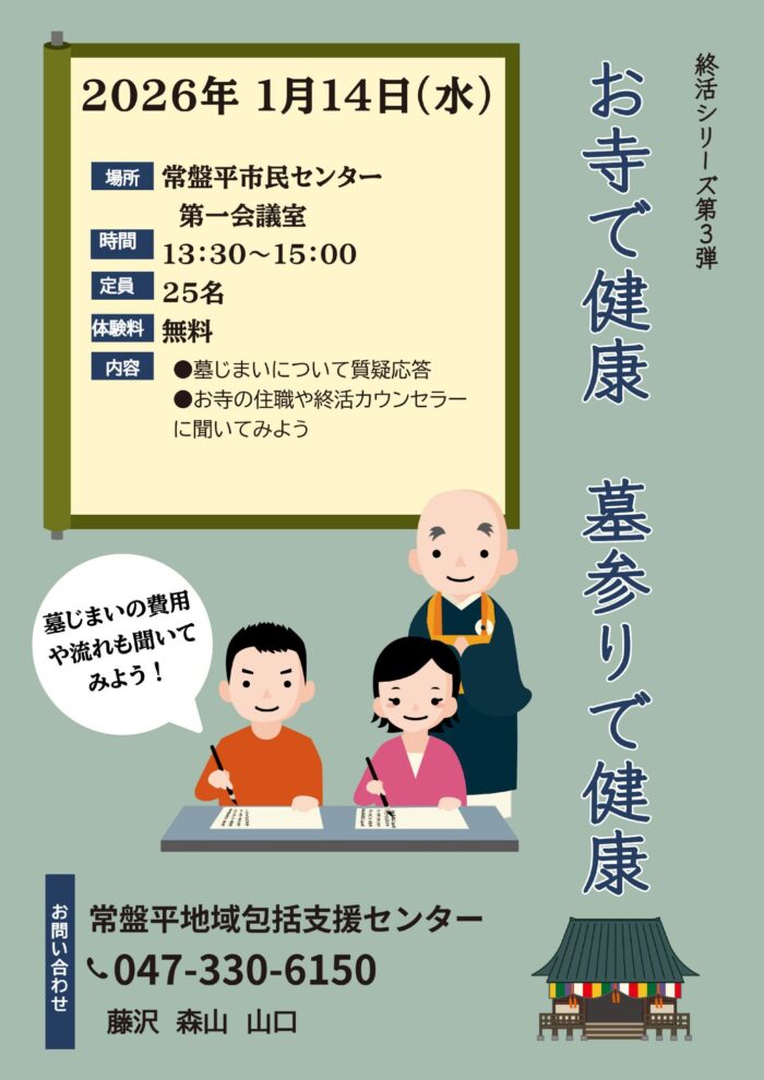 今月、松戸市常盤平地域包括センターから「お墓じまい」についての講師を依頼されています。