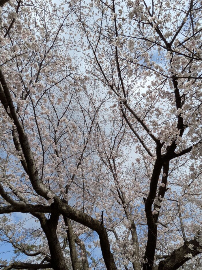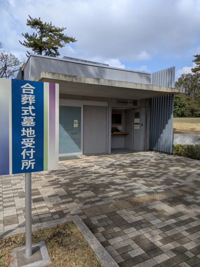 合葬式墓地の前には桜が咲き誇っています。