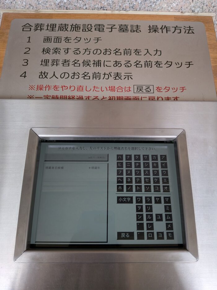 故人名と納骨日が確認できます。