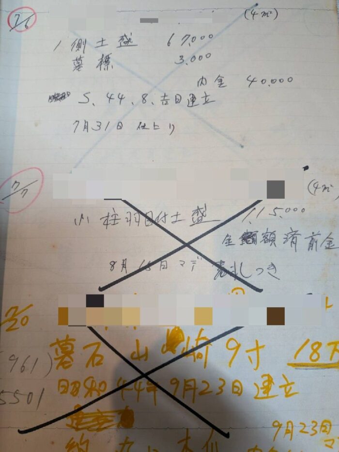 古い改葬許可書控えもたくさん残っていて、改葬元(寺院墓地情報)も読み取れました。