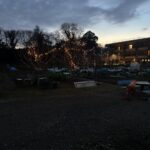 都立八柱霊園前のうめ家石材店です。 夕暮れ時、借りている家庭菜園へ行きました。 畑も冬支度。霜よけシートが剥がれていないか ...