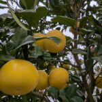 庭の土佐文旦を収穫しました。お向かいさんにお裾分けしたら金柑をいただきました。お向かいさんと我が家の意外な共通点を知りました。